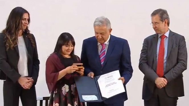 El presidente de México, Andrés Manuel López Obrador, entregó el Premio Nacional de Deportes 2019 a la gimnasta Alexa Moreno en Palacio Nacional.