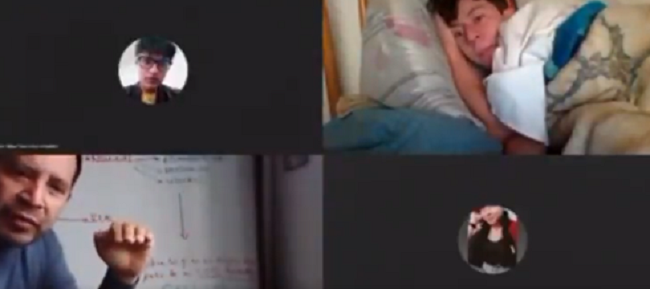 Un profesor logró campar el momento en que uno de sus alumnos se encuentra acostado y tapado con sus cobijas mientras toma la clase en línea.