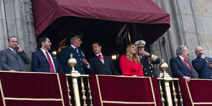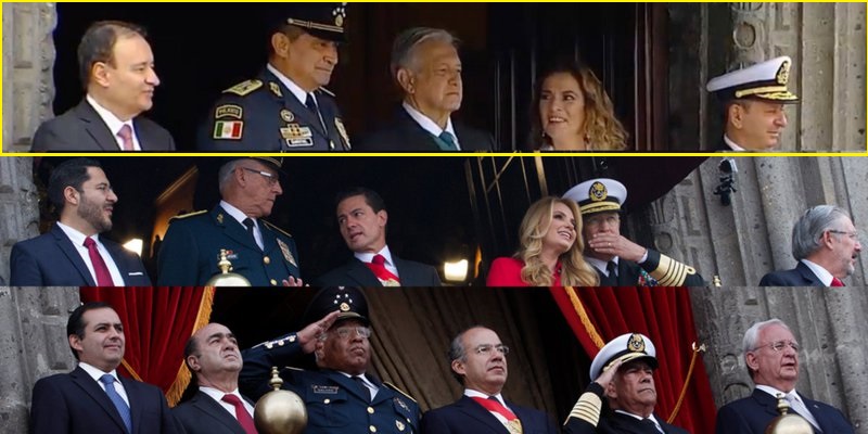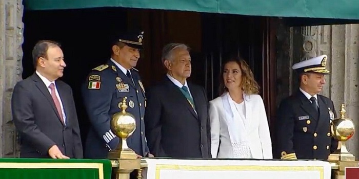 El presidente Andrés Manuel López Obrador cambió la tradición de sumar a los otros poderes del país para presenciar el desfile militar pues en el balcón presidencial solo le acompañaron los secretarios de Marina, José Rafael Ojeda, el de Defensa Nacional, Luis Crescencio Sandoval, el secretario de Seguridad, Alfonso Durazo, y su esposa, Beatriz Gutiérrez Müller y estuvieron ausentes los titulares del Poder Judicial y Legislativo.