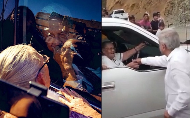 ? "No te bajes, ya recibí tu carta"; en plena contingencia por #Covid_19, #AMLO saluda a la mamá del #Chapo Guzmán.