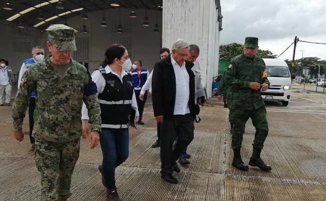 En el estado lo recibieron: Laura Velázquez, titular de la Coordinación Nacional de Protección Civil (CNPC), el gobernador de Tabasco, Adán Augusto López y los titulares de la Secretaría de la Defensa Nacional (Sedena) y de Marina, Luis Cresencio Sandoval y Rafael Ojeda, respectivamente.