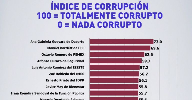 De acuerdo con los resultados presentados esta mañana por México Elige, con el 73 por ciento, la exatleta sonorense es la integrante del gabinete presidencial con la percepción más alta de corrupción.