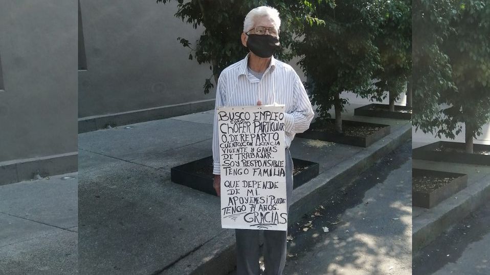 Un hombre de 74 años se hizo viral, luego de que una publicación en Facebook lo mostrara cargando un cartel en el que asegura que busca empleo como chofer particular o de reparto.