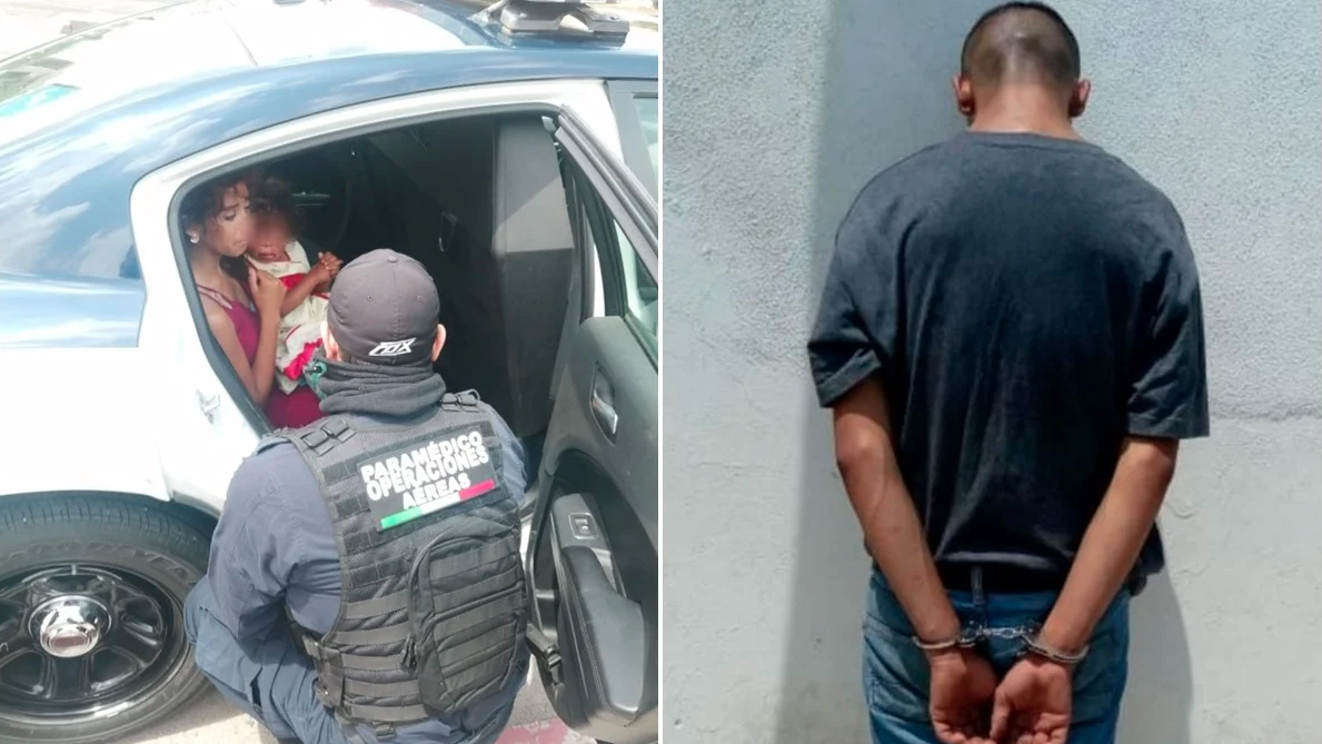 Paramédicos del Grupo de Operaciones Aéreas auxiliaron a una menor de dos años lesionada a patadas y puñetazos por su padrastro, al igual que su madre, mientras que el presunto agresor fue detenido por elementos de la Policía Municipal.