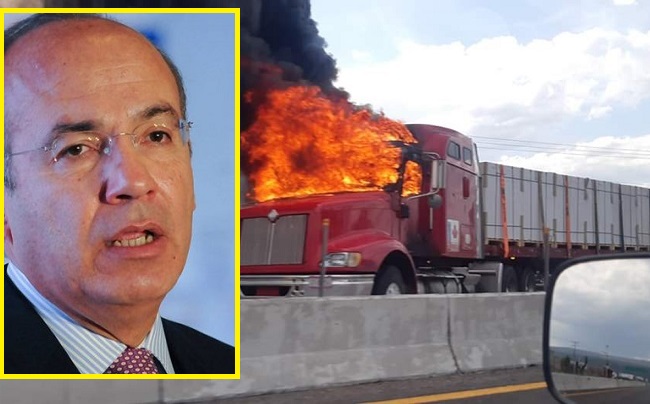 En su cuenta de Twitter, Calderón Hinojosa publicó el siguiente mensaje: “Autos incendiados y cadáveres apilados en la carretera”.