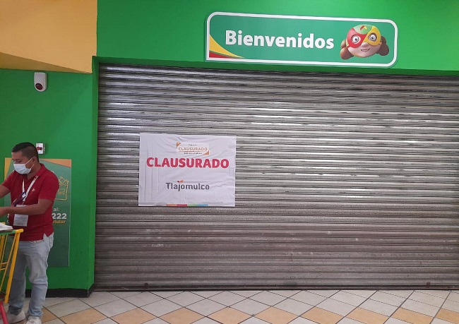 El personal de Inspección y Vigilancia del municipio de Tlajomulco de Zúñiga, en Jalisco, clausuró una tienda Bodega Aurrera ubicada en el centro comercial Multiplazas del Valle, pues obligaba a trabajar al personal contagiado de covid-19.
