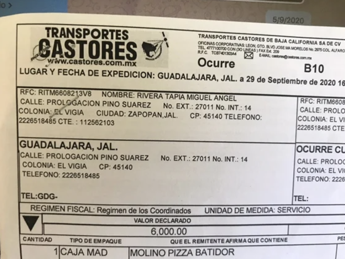 “El envío (sí) se hizo por medio de la empresa Castores, se lo dejaron más económico y me dio un número de guía, me dijo ‘tú hablas y ahí te confirman’. Hablé y me dijeron que sí que tenían un horno y que iba para Morelos”.