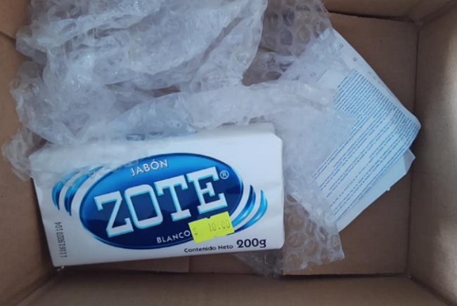 La chica recibió de la paquetería FEDEX su pedido, al abrirlo se encontró con un jabón zote, con todo y precio de 10$.