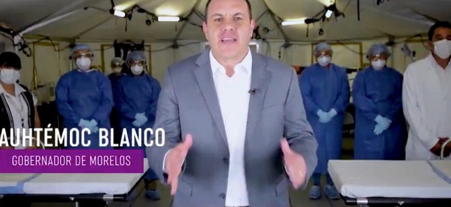 En redes sociales acusan que el gobernador de Morelos, Cuauhtémoc Blanco, habría montado un hospital móvil en la unidad deportiva El Centenario, en Cuernavaca, solo para grabar un spot en donde se decía listo para que el estado enfrentara la pandemia de COVID-19.