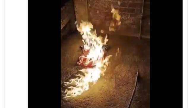 Tras dichas palabras, el hombre se despoja de su playera rojiblanca, misma que entrega a otro joven que lleva puesta una camiseta del América, quien después de bañarla en gasolina le prenderle fuego.