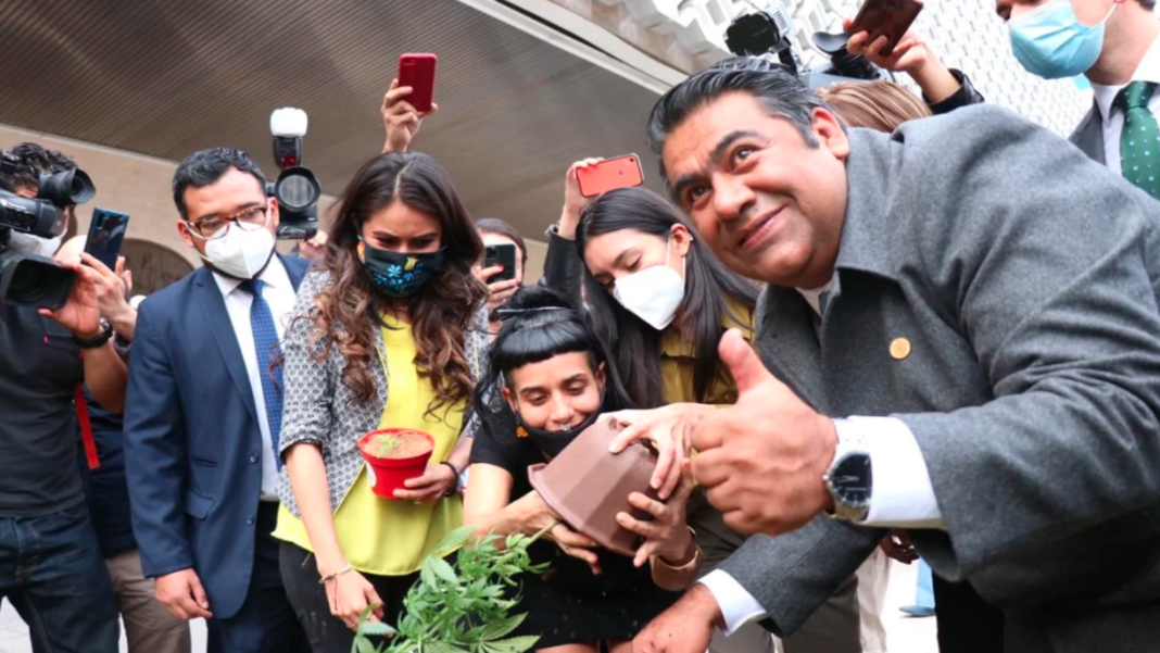 El diputado federal de Morena, Sergio Pérez, sembró la tarde de este jueves una planta de marihuana en la explanada principal de la Cámara de Diputados.