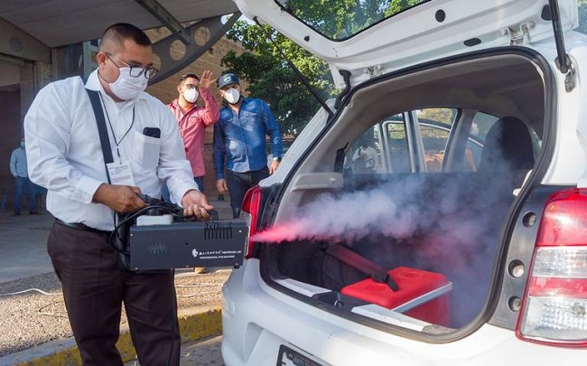 “Es un aparato muy conocido en los años 80, una máquina de humo utilizada para fiestas, como tal. Pero hoy con la pandemia, las empresas que se dedican al cuidado, se pusieron a trabajar y nos trajeron un producto a bases de sales cuaternarias y cítricos, que es especial para sanitizar el tema del Covid-19” informó al Sol de Sinaloa.