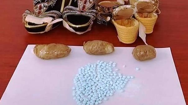 Al abrir el paquete se localizaron un par de sandalias que ocultaban en su interior cuatro envoltorios con aproximadamente 900 pastillas azules, aparentemente de fentanilo, las cuales fueron puestas a disposición del Agente del Ministerio Público de la Federación, donde se dará seguimiento a las investigaciones.