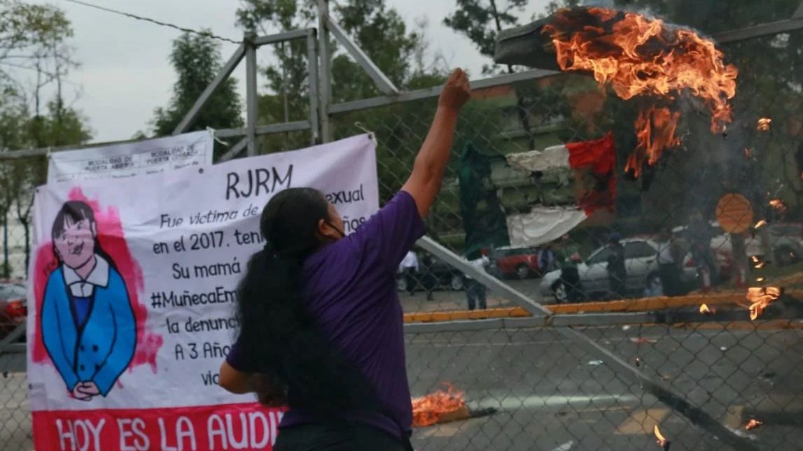 Un grupo de mujeres, con el rostro cubierto y pancartas, vandalizaron las casetas de seguridad del Reclusorio Sur, luego de que llegaran a protestar al exterior de un juzgado donde se realizaba la audiencia de un imputado en el delito de violación en perjuicio de una niña.