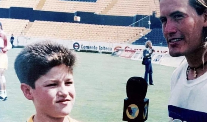 El periodista Javier Risco compartió una fotografía de García Sepúlveda que dataría de los años 90, él de niño y vistiendo una playera del equipo Tigres y conversando con el Matador, con un micrófono de por medio.