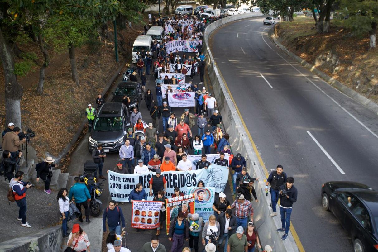 La Caminata por la Paz está siendo resguardada por aire y tierra por elementos de seguridad de Morelos. Se espera que haga un trayecto de 12 kilómetros hasta la curva conocida como La Pera en la carretera México-Cuernavaca.