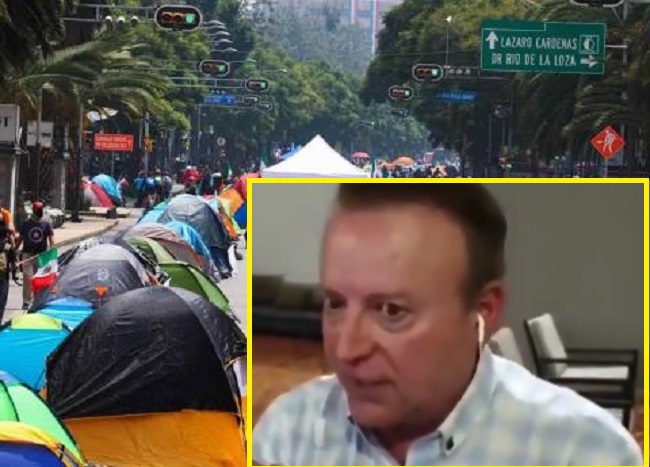 Durante una entrevista virtual, el empresario regiomontano fue cuestionado sobre su ausencia en el campamento montado por sus compañeros en el centro de la Ciudad de México. Al respecto, afirmó que hará acto de presencia cuando a él se le ocurra y afirmó que su tiempo es muy valioso como para estar metido en una tienda de campaña como un ‘payaso’.