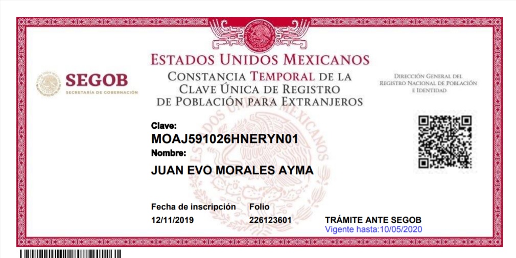 Mientras que en México posee una constancia de CURP, en Bolivia a Evo Morales lo acusan de terrorismo.
