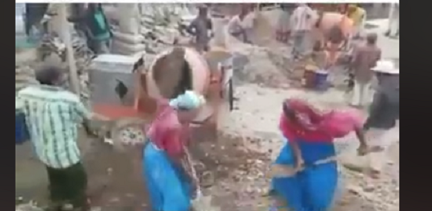 Y así es como esta pasando en una comunidad, donde tanto hombres como mujeres se organizaron para apoyar en la construcción de carreteras, y así lograr la transformación de su comunidad, en el vídeo se observa como las damas toman las palas y comienzan a mezclar la arena con el cemento en la revolvedora.