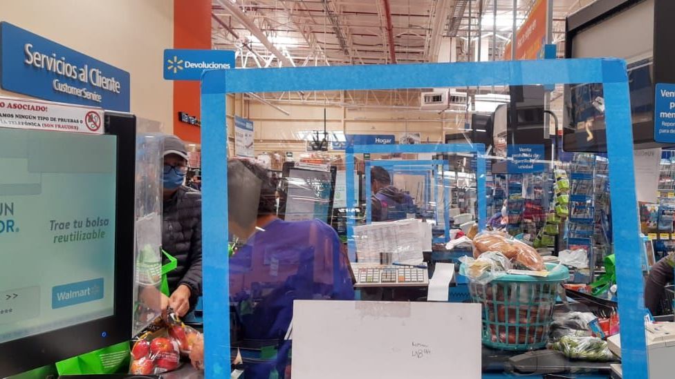 Tal es el caso de la tienda Walmart que instaló acrílicos en las “cajas” para evitar que los socios tengan contacto con los compradores.