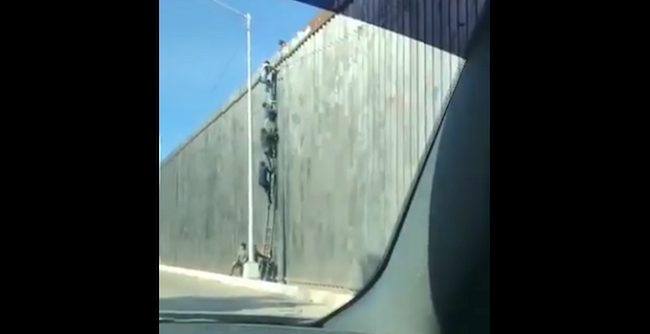 En redes sociales circula un nuevo video donde migrantes indocumentados cruzan el muro fronterizo en alguna zona no especificada donde Estados Unidos y México colindan con la ayuda de una escalera y a plena luz del día lo cual demuestra que ni la propuesta del Presidente Donald Trump de hacer un muro a lo largo de la frontera podría detener la migración sin documentos e inclusive el narcotráfico.