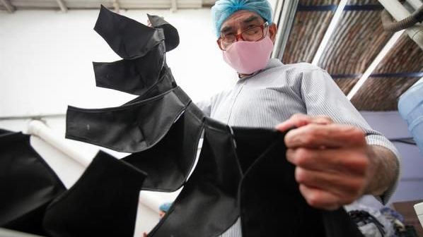 Alan Mora Becerra produce bolsos que son exportados y vendidos en tiendas de ropa de prestigio. Desde marzo, tras el cierre obligatorio de su fábrica, busco una forma distinta de subsistir y comenzó a hacer cubrebocas.