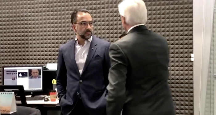 El expanista Javier Lozano compartió un video en el que se aprecia que se negó a saludar al gobernador electo de Baja California Jaime Bonilla, con quien coincidió en una cabina radiofónica.