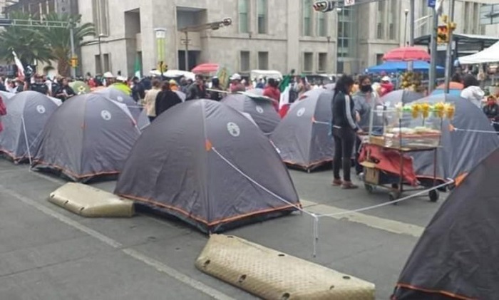 El plantón del Frente Nacional Anti Amlo (Frena) que permanece desde el sábado en la avenida Juárez tratará de avanzar hacia el Zócalo en las próximas horas.