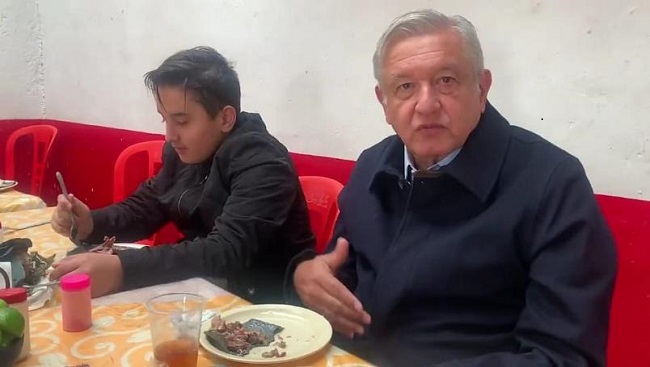 En compañía de su hijo menor, López Obrador señaló que decidió ir a comer el platillo señalado, también con la intención de agasajarlo, pues dijo que lo ha acompañado en su gira para ayudarlo además de que señaló, se ha portado muy bien y por eso se la ganó.