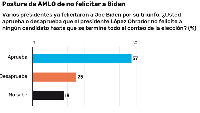 La decisión del presidente Andrés Manuel López Obrador de no felicitar a ninguno de los candidatos a la presidencia de Estados Unidos hasta que concluya el conteo de votos tiene un respaldo mayoritario de los mexicanos.