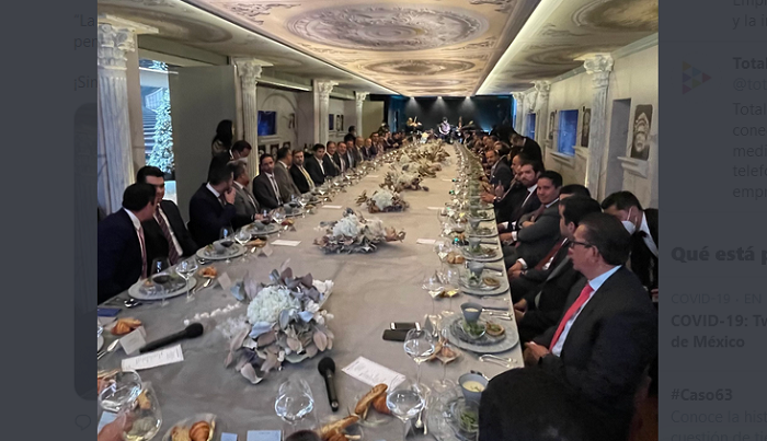 En la imagen publicada con su iPhone 12 Pro Max Azul, se aprecia una gran mesa con al menos 40 hombres de traje y degustando su comida navideña.
