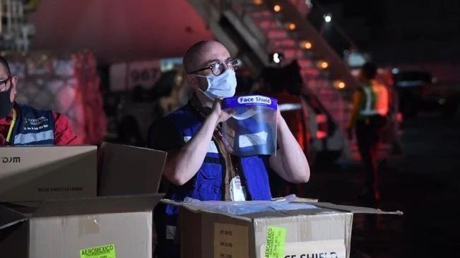 Al llegar 10 toneladas de equipo de protección (mascarillas KN95 y guantes de exploración) el 10 de abril, para el personal médico que está en la primera línea de batalla contra el nuevo virus, la secretaria de Asuntos Multilaterales y Derechos Humanos de la a cancillería, Martha Delgado Peralta, dijo que dentro de los 15 días siguientes llegaban dichos aparatos, equipo electrónico y medicinas, pero a la fecha siguen pendientes.
