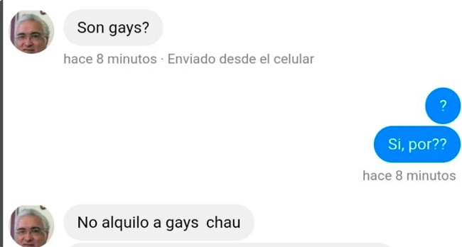 Alexis informó que el sujeto, que renta dos casas al lado de la que el habita, le preguntó si los dos chicos que pensaban quedarse en la habitación eran pareja a lo que el respondió que no, pero al cuestionarlos sobre su orientación sexual y conocer que eran homosexuales, el dueño del inmueble les negó la renta.
