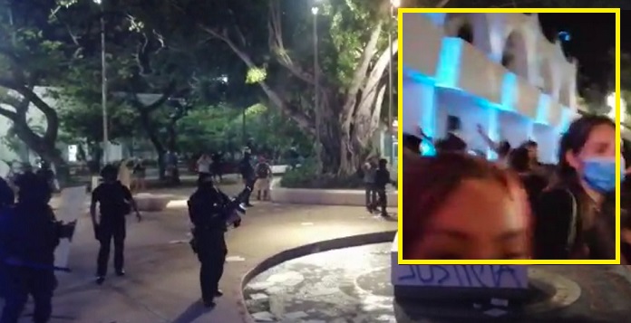 #LoÚltimo | Policías disparan para dispersar protestas por asesinatos de mujeres en Cancún, Quintana Roo.