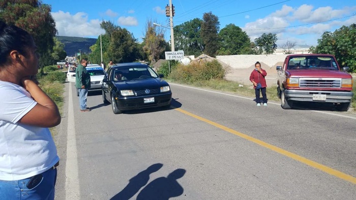 Ante su arresto, compañeras de las estudiantes y profesores de la Escuela Normal Rural Vanguardia realizan un bloqueo en la Carretera Internacional 190 Cristóbal Colón, en inmediaciones del plantel.