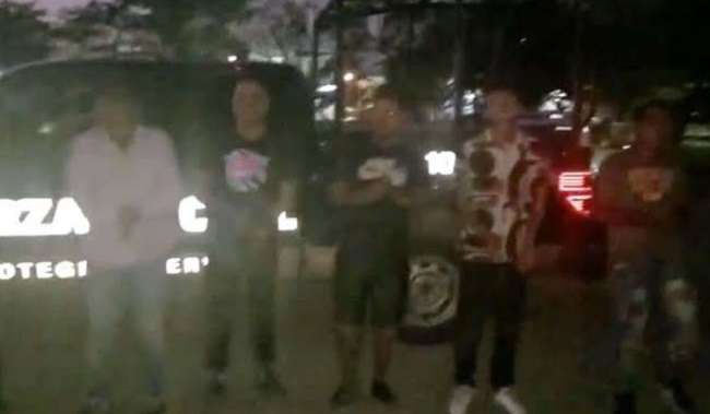 En un video que circula en redes sociales se observa a seis hombres frente a una camioneta oficial con el número FC102, quienes con desgano aplauden y mueven los pies mientras entonan: “Y la culpa no era mía, ni dónde estaba, ni cómo vestía. El violador eres tú”.