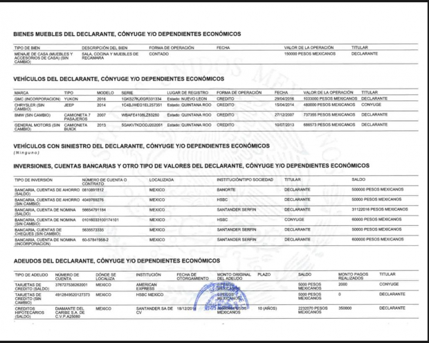 Un año después de ocupar el cargo, la entonces militante del PRI reportó que esa misma cuenta se había incrementado a 31 millones 122 mil 016 de pesos.