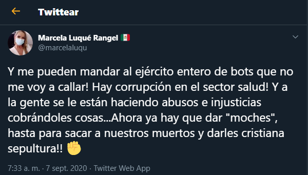 En otro tuit se ha hecho pasar por una víctima, y asegura que pese a las “amenazas” que le han mandado, ella no se callará, pues por alguna razón, cree que lucha por las injusticias promoviendo el odio.