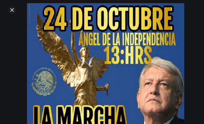 La ruta. la manifestación saldrá del Ángel de la Independencia rumbo a la plancha del Zócalo de la Ciudad de México en donde los integrantes del Frente Nacional Anti-AMLO FRENAAA tienen un plantón desde el pasado 23 de septiembre.