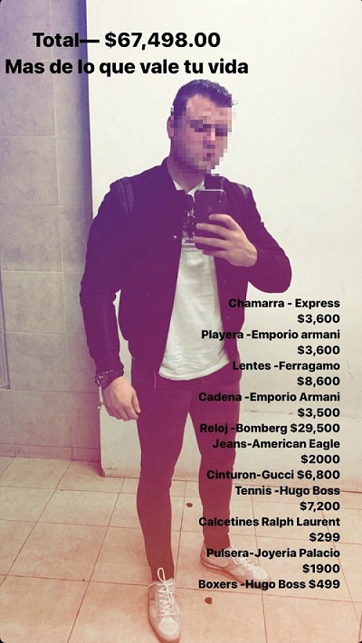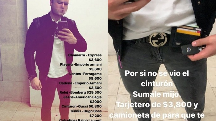 En la minuciosa lista que el sujeto proporcionó en su presunción figuraban costosas marcas como «Gucci» y «Hugo Boss», indicando los precios junto a cada una de las prendas y accesorios, que iban desde los $299 pesos hasta los $29,500. También indicaba la suma total del vestuario.