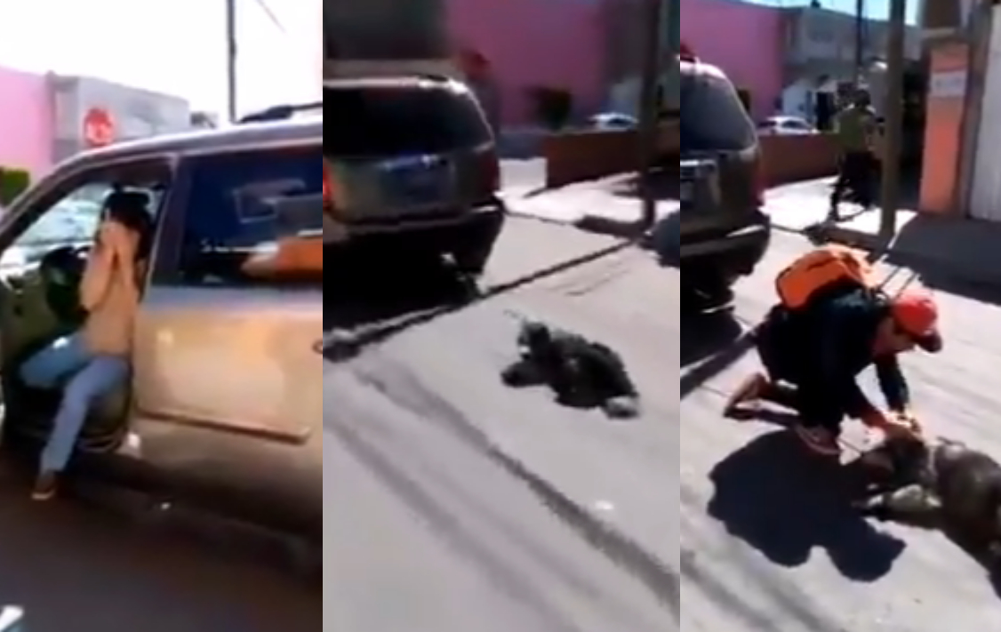 Cuando las personas comienzan a aglomerarse le piden a la mujer que está manejando que se detenga, en el video se escucha cuando una persona le grita “¿Qué le pasa señora? ¡Saque a su perro!”, “¡Lo está matando, qué le pasa!”.