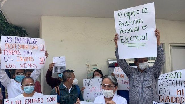 Por su parte, personal de enfermería que atiende áreas Covid exigió la entrega de uniformes y mascarillas de uso médico para la atención de pacientes.