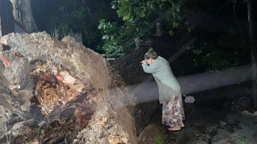 A través de redes sociales, usuarios compartieron las fotografías de una mujer que lloró frente a su árbol de nogal, de más de 100 años, que derribó la fuerza del huracán Hanna que azotó el norte del país.