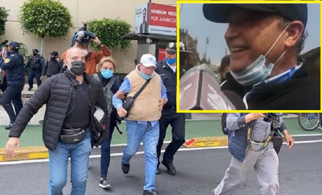 Con una actitud perturbada y burlona, Gilberto Lozano se encontraba dando entrevistas en el zócalo de la ciudad de México, pues aparentemente ya regresó del hospital a apoyar a su movimiento FRENAAA después de abandonarlos por problemas de salud.