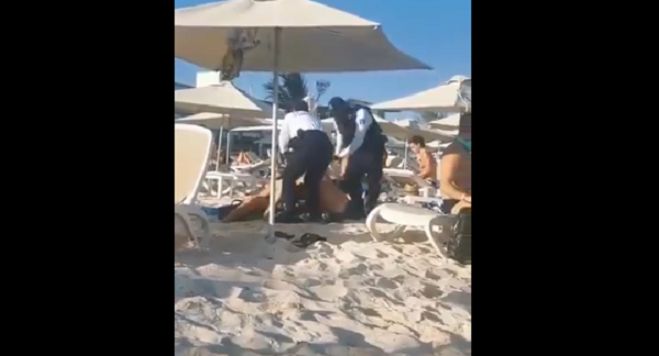 En el clip se aprecia cuando dos turistas son arrastrados por los uniformados dentro de la playa, mientras otras personas les reclaman por lo sucedido.