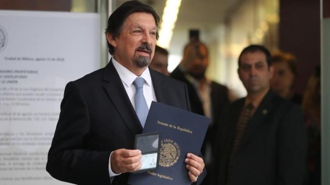 Gómez Urrutia, senador electo por Morena, reapareció este lunes en el Senado tras 12 años de estar fuera del país, luego de una investigación en su contra por el supuesto mal uso de 55 millones de dólares de un fideicomiso de trabajadores mineros.