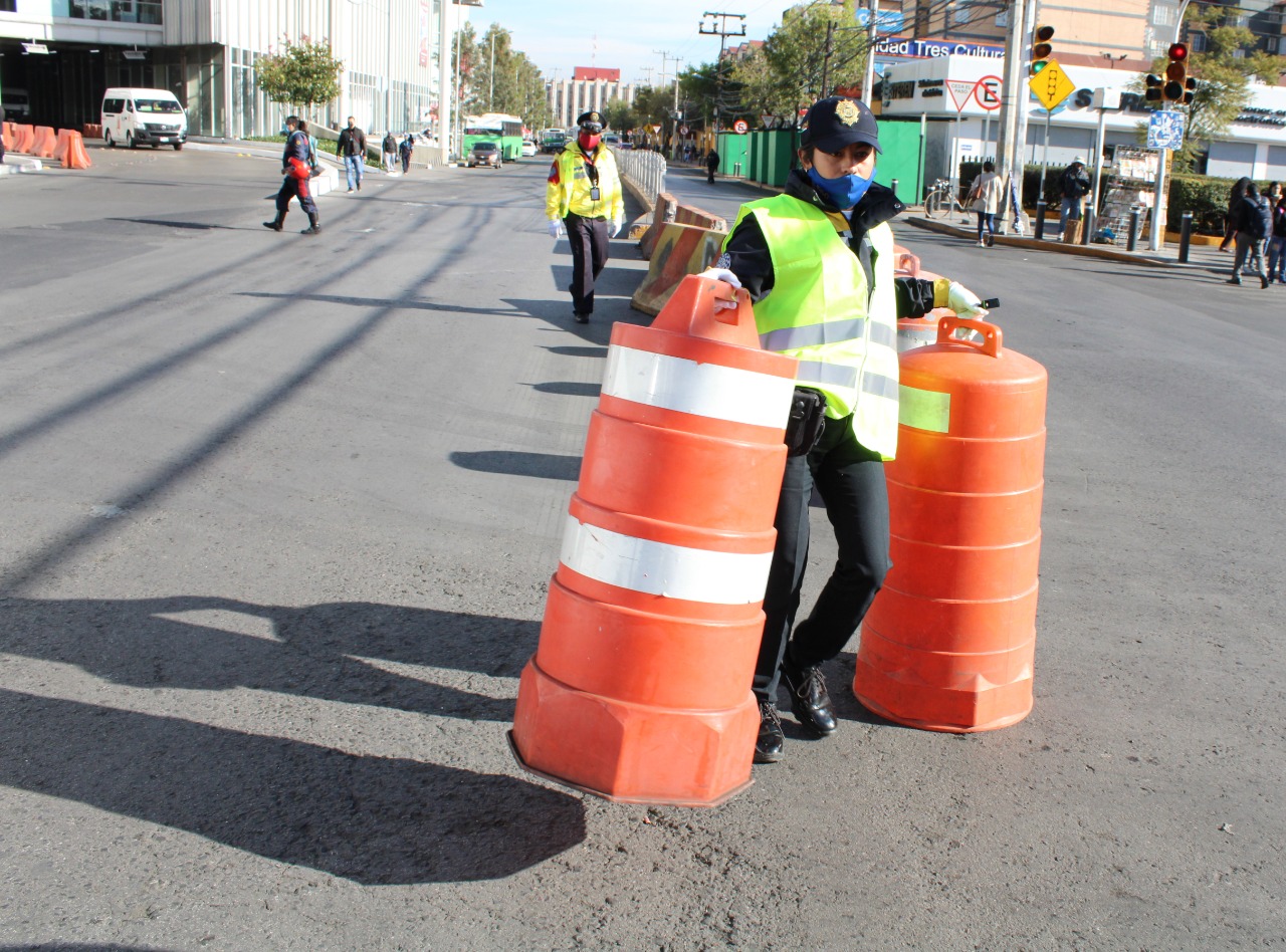 Desde el sábado 9 de diciembre, 40 elementos de la Dirección de Tránsito se instalaron en Avenida Ingenieros Militares, esquina con Transmisiones Militares, en la Colonia Lomas de Sotelo, para brindar apoyo vial a los automovilistas y orientación a los peatones que buscan abordar servicios de transporte alterno.