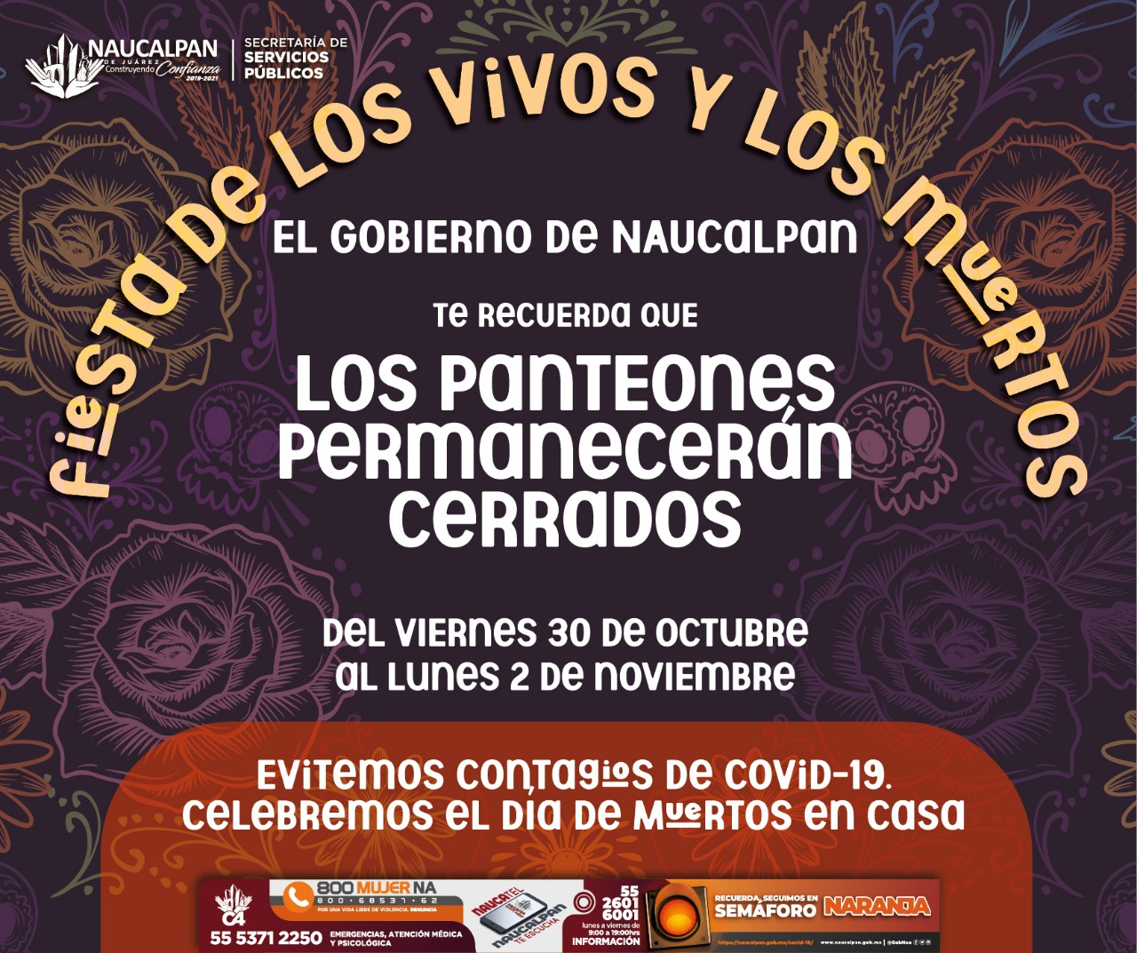Por lo anterior, el Secretario de Servicios Públicos, Carlos Trujillo Anell, invitó a la población naucalpense a celebrar de una forma distinta esta fecha para preservar la salud propia, de la familia y de compañeros de trabajo.