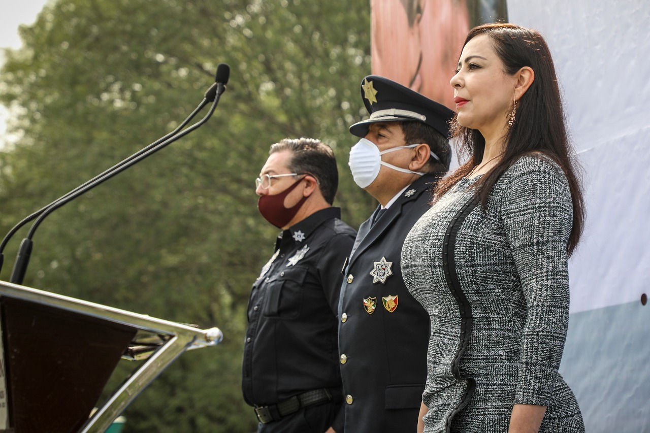 Asimismo, la Alcaldesa recordó a los ocho agentes caídos durante la pandemia de coronavirus, por lo que se guardó un minuto de silencio y se aplaudió la labor de la Policía naucalpense durante la contingencia.