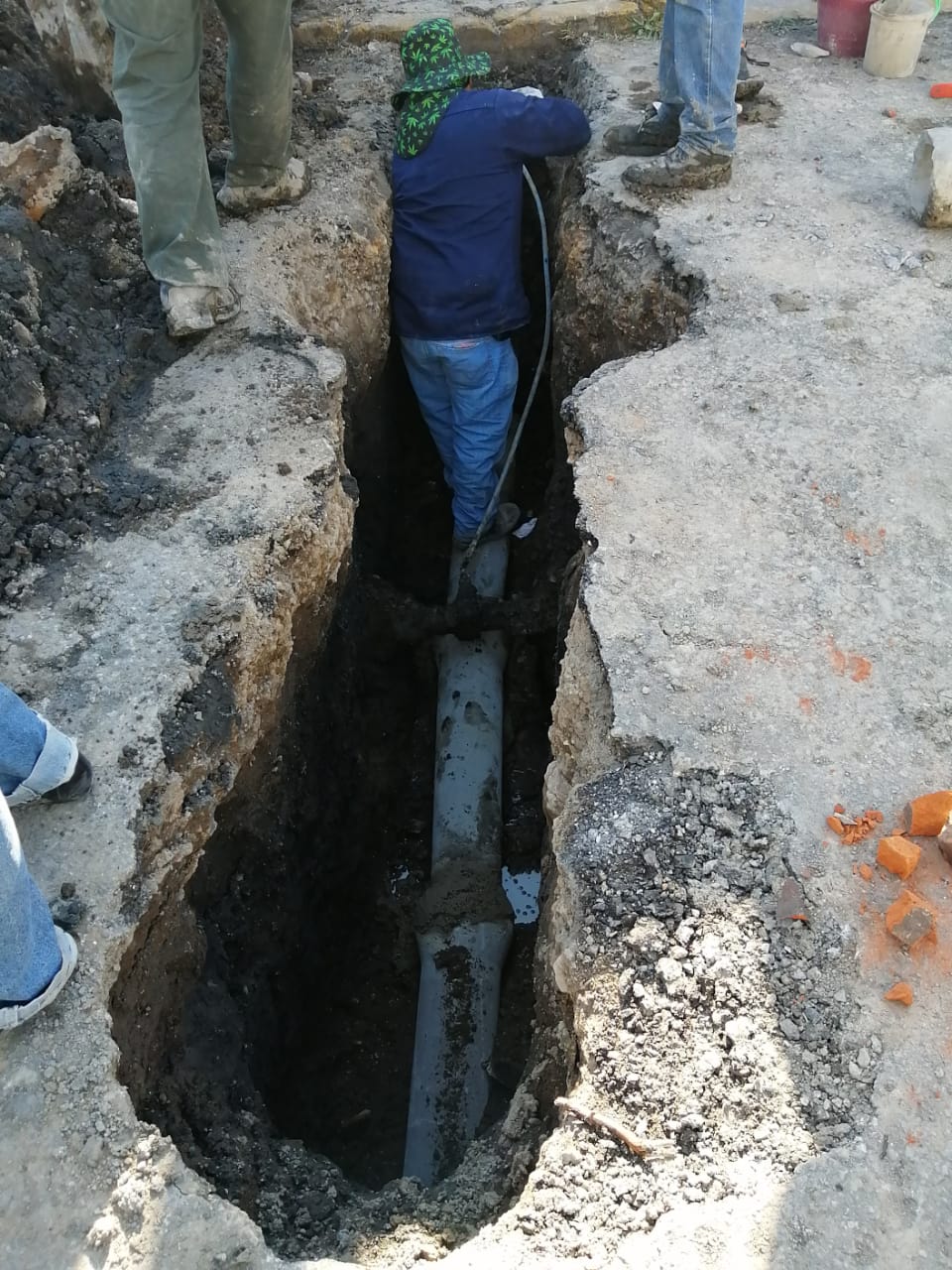 “En el lugar se detectó colapsada la descarga, lo que derivó en la pérdida de finos y, por consiguiente, el hundimiento, por lo que procedimos al retiro de escombro para sustituir un tramo de 5 metros de tubería de 15 centímetros de diámetro”, explicó.